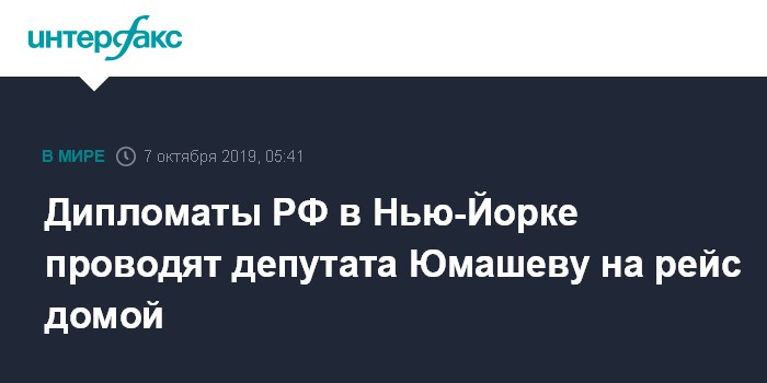 Дипломаты РФ в Нью-Йорке проводят депутата Юмашеву на рейс домой