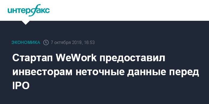 Стартап WeWork предоставил инвесторам неточные данные перед IPO
