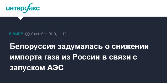 Москва. 8 октября. INTERFAX.RU - Белоруссия может снизить импорт природного газа из России в 2020 году в связи с планируемым вводом атомной электростанции, сообщил журналистам во вторник в Минске министр энергетики Белоруссии Виктор Каранкевич.