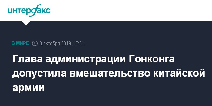 Глава администрации Гонконга допустила вмешательство китайской армии