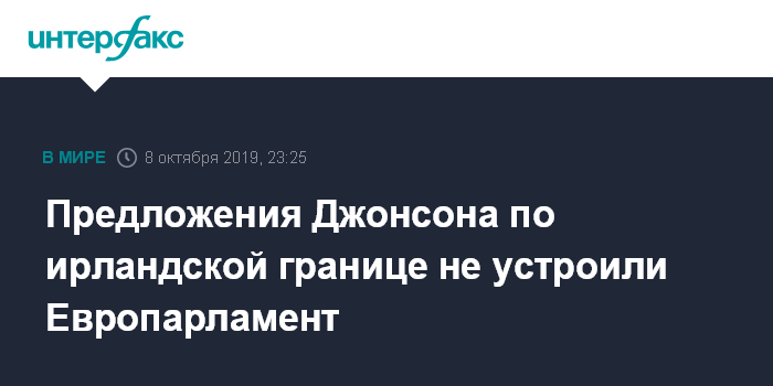 "Мы не согласимся на сделку, которая подрывает соглашение Страстной пятницы (Белфастское соглашение 1998 года - ИФ) и мирный процесс или ставит под угрозу целостность нашего единого рынка. Это мы ясно дали понять в нашей резолюции, принятой подавляющим большинством в сентябре", - напомнил Сассоли.