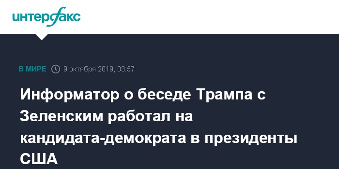 Информатор о беседе Трампа с Зеленским работал на кандидата-демократа в президенты США