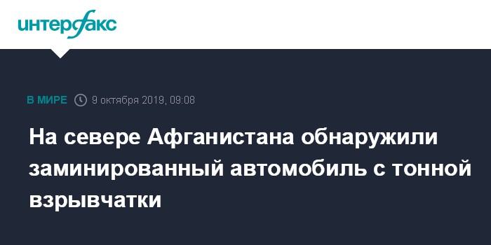 Москва. 9 октября. INTERFAX.RU - Крупный теракт предотвращен на севере Афганистана в городе Сарипуль, оперативники обнаружили заминированный автомобиль, в котором была почти одна тонна взрывчатки, сообщил во вторник начальник пресс-центра афганского МВД Нусрат Рахими.