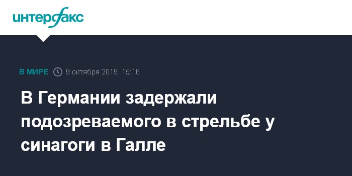 Москва. 9 октября. INTERFAX.RU - Полиция Германии сообщила в твиттере о задержании подозреваемого в стрельбе у синагоги в городе Галле, в результате которой погибли два человека.