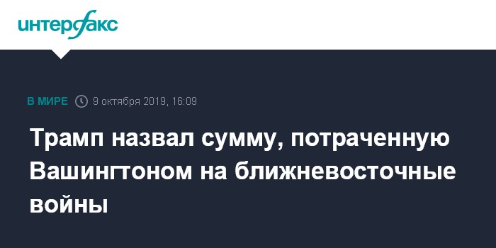 Москва. 9 октября. INTERFAX.RU - США потратили $8 трлн на военные операции на Ближнем Востоке, заявил в среду президент США Дональд Трамп.