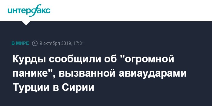 Москва. 9 октября. INTERFAX.RU - Представитель курдских военизированных формирований на севере Сирии подтвердил, что Турция начала военную операцию в этом районе, сообщает в среду агентство Associated Press.