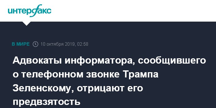 Адвокаты информатора, сообщившего о телефонном звонке Трампа Зеленскому, отрицают его предвзятость