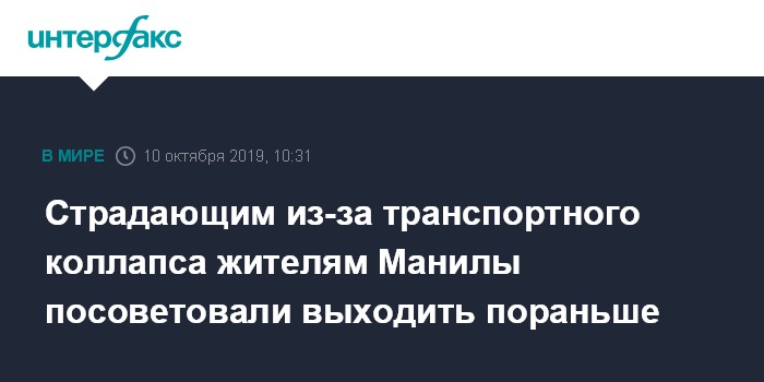 Москва. 10 октября. INTERFAX.RU - Представитель президента Филиппин подвергся критике за реакцию на многочисленные жалобы жителей столицы государства Манилы на тяжелую транспортную ситуацию.