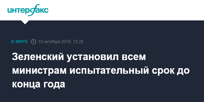 Москва. 10 октября. INTERFAX.RU - Президент Украины Владимир Зеленский предупредил всех министров своего правительства, что ждет от них отчетов о реальных делах до конца года. Если им будет нечего представить, он их уволит. Так он ответил на пресс-марафоне на вопрос о министрах из прежнего состава правительства.