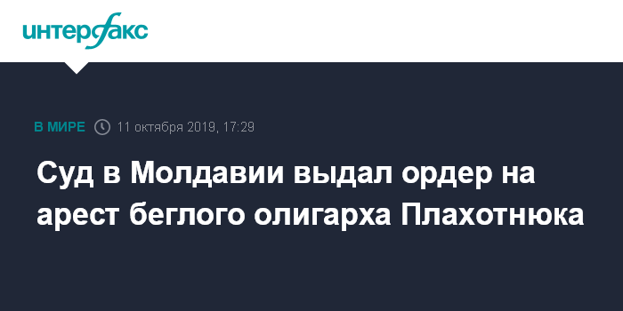 Москва. 11 октября. INTERFAX.RU - Суд в Молдавии выдал ордер на арест на 30 суток беглого олигарха Владимира Плахотнюка, заочно арестованного и в России.