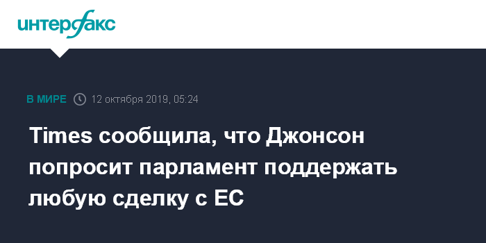Times сообщила, что Джонсон попросит парламент поддержать любую сделку с ЕС