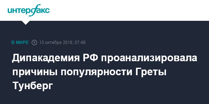 Дипакадемия РФ проанализировала причины популярности Греты Тунберг