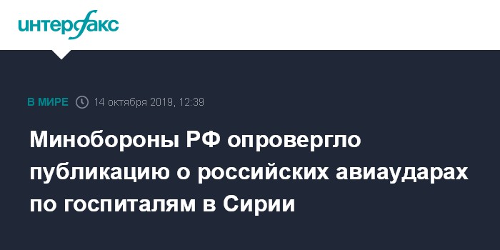 Москва. 14 октября. INTERFAX.RU - В Минобороны РФ опровергли сообщения о бомбардировке российскими самолетами больниц в сирийском Идлибе.