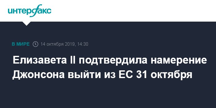 Елизавета II подтвердила намерение Джонсона выйти из ЕС 31 октября