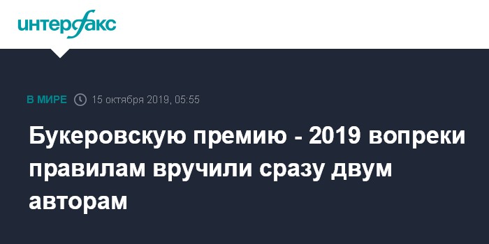 "Мучительные пять часов судьи Букеровской премии 2019 года обсуждали любимые книги из шорт-листа и сочли невозможным выбрать одного победителя. Они были не столько разделены, сколько не желали больше исключать (претендентов на премию - ИФ), и наконец они выбрали двух и спросили, могут ли они разделить приз между ними. Получив ответ, что это явно противоречит правилам, судьи провели дополнительное обсуждение и решили их (правила - ИФ) проигнорировать", - приводит сайт слова литературного директора Фонда Букеровской премии Габи Вуда.