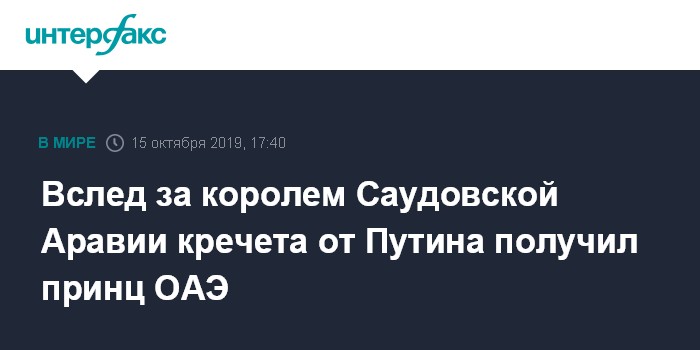 Вслед за королем Саудовской Аравии кречета от Путина получил принц ОАЭ