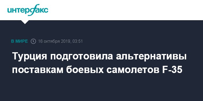 Москва. 16 октября. INTERFAX.RU - Президент Турции Реджеп Тайип Эрдоган заявил, что у его страны уже есть реальные возможные альтернативы поставкам американских боевых самолётов F-35.