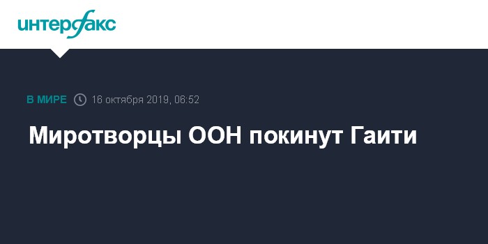 Москва. 16 октября. INTERFAX.RU - ООН завершила свою пятнадцатилетнюю миротворческую миссию на Гаити, но продолжит гуманитарную поддержку страны на фоне политического кризиса, сообщил во вторник заместитель Генерального секретаря организации Жан-Пьер Лакруа.