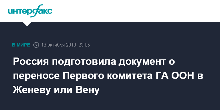 Россия подготовила документ о переносе Первого комитета ГА ООН в Женеву или Вену