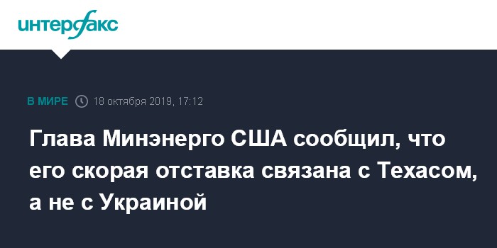 Глава Минэнерго США сообщил, что его скорая отставка связана с Техасом, а не с Украиной