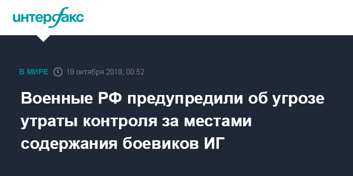 Военные РФ предупредили об угрозе утраты контроля за местами содержания боевиков ИГ