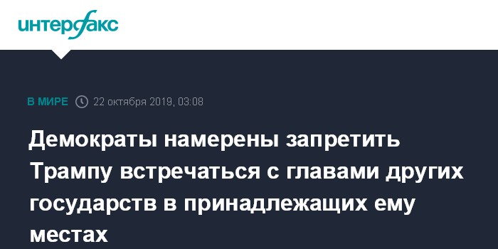 Москва. 22 октября. INTERFAX.RU - Группа сенаторов-демократов представила закон, который запретит Белому дому проводить встречи президента США с главами иностранных государства в местах, принадлежащих Дональду Трампу.