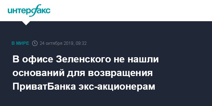 Москва. 24 октября. INTERFAX.RU - В Офисе президента Украины на встрече с послами стран "Большой семерки" указали, что какими бы ни были судебные решения, оснований для возвращения ПриватБанка бывшим акционерам нет.
