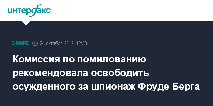 Комиссия по помилованию рекомендовала освободить осужденного за шпионаж Фруде Берга