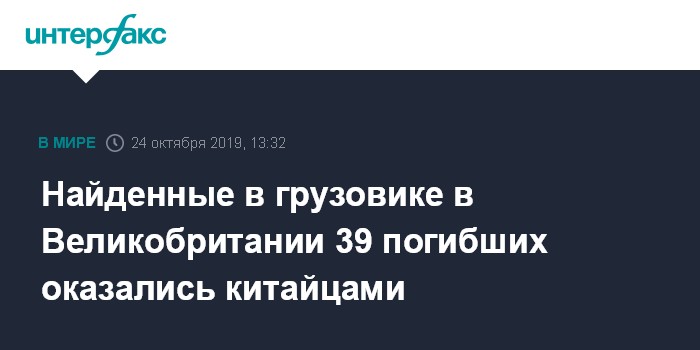 Найденные в грузовике в Великобритании 39 погибших оказались китайцами