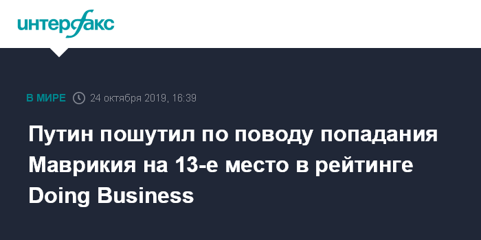 Путин пошутил по поводу попадания Маврикия на 13-е место в рейтинге Doing Business