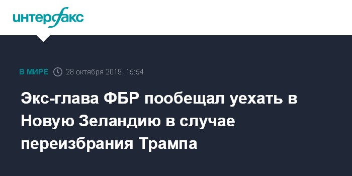 Экс-глава ФБР пообещал уехать в Новую Зеландию в случае переизбрания Трампа