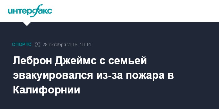 Москва. 28 октября. INTERFAX.RU - Баскетболисту "Лос-Анджелес Лейкерс" Леброну Джеймсу и его семье в срочном порядке пришлось покинуть свой дом в связи с крупным пожаром в Калифорнии.
