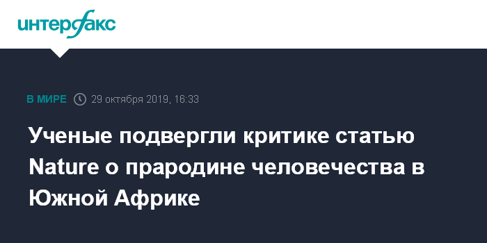Ученые подвергли критике статью Nature о прародине человечества в Южной Африке