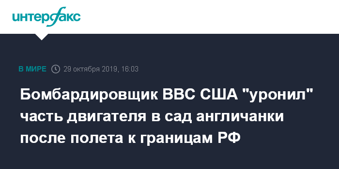 Бомбардировщик ВВС США "уронил" часть двигателя в сад англичанки после полета к границам РФ