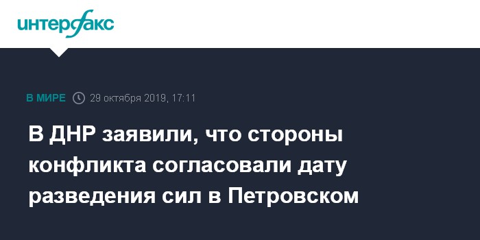 В ДНР заявили, что стороны конфликта согласовали дату разведения сил в Петровском