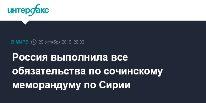Россия выполнила все обязательства по сочинскому меморандуму по Сирии