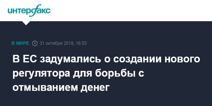 Москва. 31 октября. INTERFAX.RU - Власти Европейского союза рассматривают возможность создания нового регулирующего органа, который занимался бы надзором за соблюдением европейскими банками норм в сфере выявления и предотвращения случаев отмывания средств.