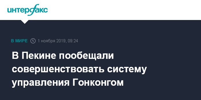 В Пекине пообещали совершенствовать систему управления Гонконгом