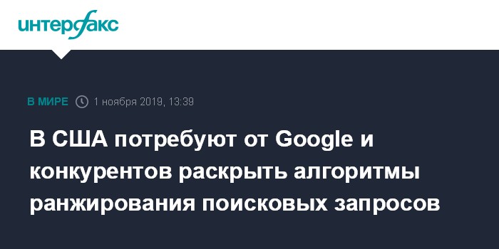 В США потребуют от Google и конкурентов раскрыть алгоритмы ранжирования поисковых запросов
