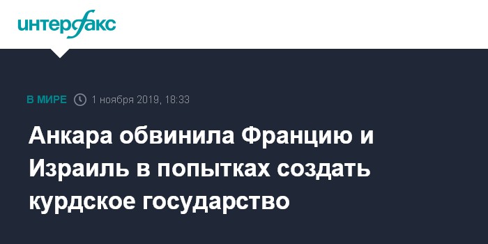 Москва. 1 ноября. INTERFAX.RU - Глава МИД Турции Мевлют Чавушоглу заявил, что что Франция и Израиль пытались создать региональное государственное образование в интересах курдских "Отрядов народной самообороны" (YPG) и Рабочей партии Курдистан.
