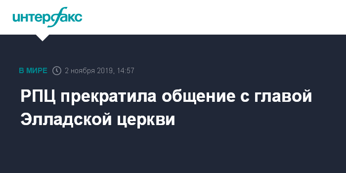 Москва. 2 ноября. INTERFAX.RU - Русская православная церковь прекратит евхаристическое общение с главой Элладской церкви уже в это воскресенье, 3 ноября.