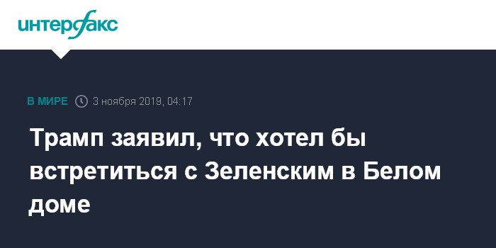 Москва. 3 ноября. INTERFAX.RU - Президент США Дональд Трамп заявил, что хотел бы провести встречу с украинским президентом Владимиром Зеленским в Вашингтоне.