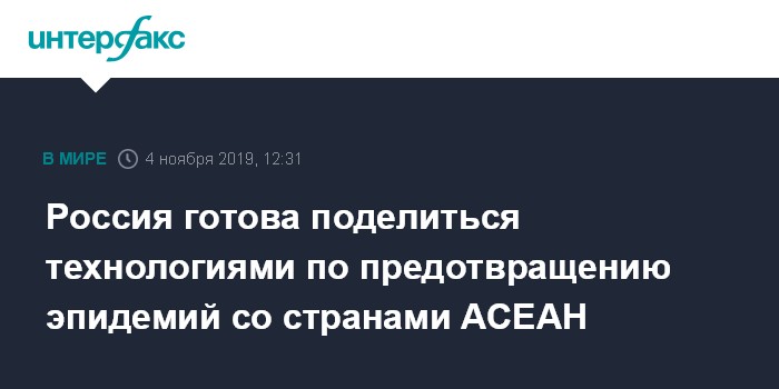 Россия готова поделиться технологиями по предотвращению эпидемий со странами АСЕАН