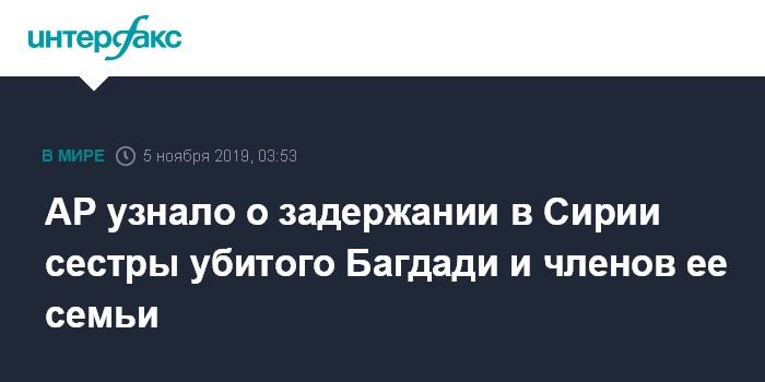 AP узнало о задержании в Сирии сестры убитого Багдади и членов ее семьи