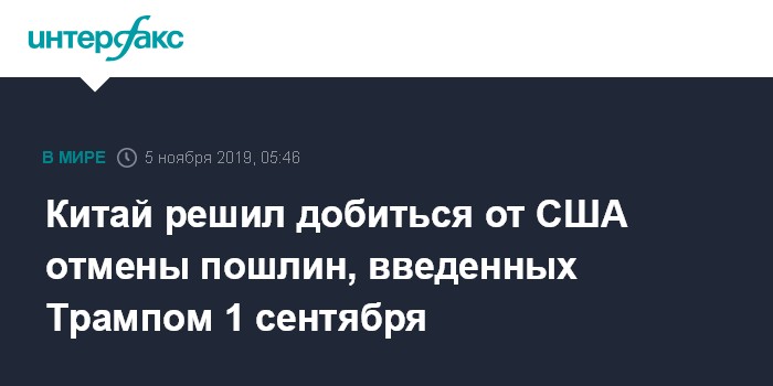 Китай решил добиться от США отмены пошлин, введенных Трампом 1 сентября