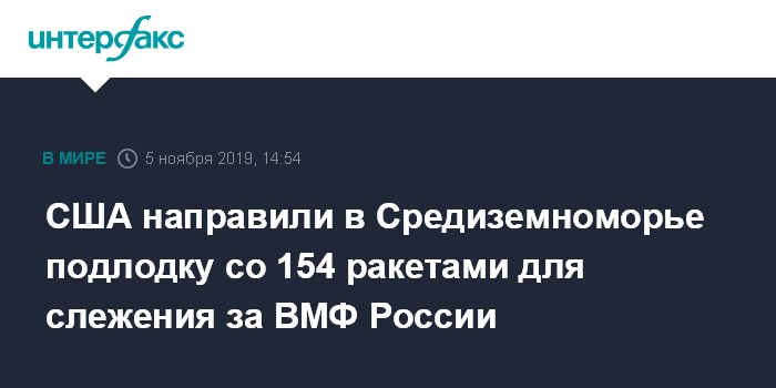 США направили в Средиземноморье подлодку со 154 ракетами для слежения за ВМФ России