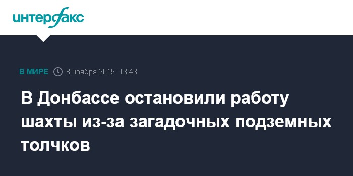 Москва. 8 ноября. INTERFAX.RU - В самопровозглашенной Донецкой народной республике (ДНР) заявили о приостановке работы шахты в городе Макеевка в связи с подземными толчками неизвестного происхождения, рассказал глава ДНР Денис Пушилин.