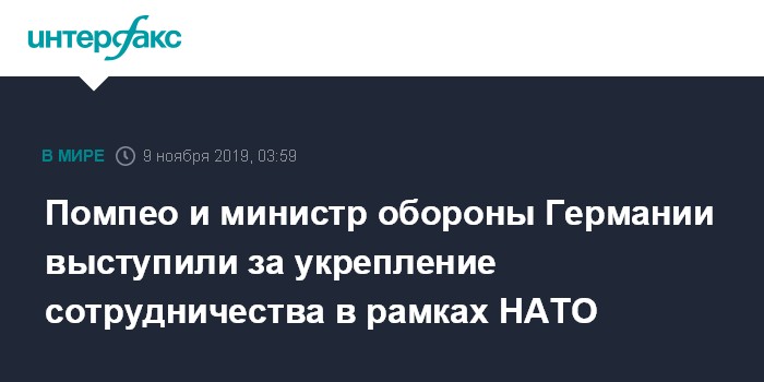 Помпео и министр обороны Германии выступили за укрепление сотрудничества в рамках НАТО