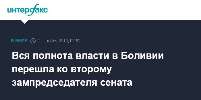 Вся полнота власти в Боливии перешла ко второму зампредседателя сената