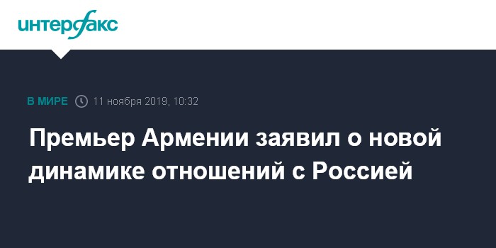 Москва. 11 ноября. INTERFAX.RU - Отношения с Россией после смены власти в Армении получили новую динамику, заявил премьер-министр закавказской республики Никол Пашинян.